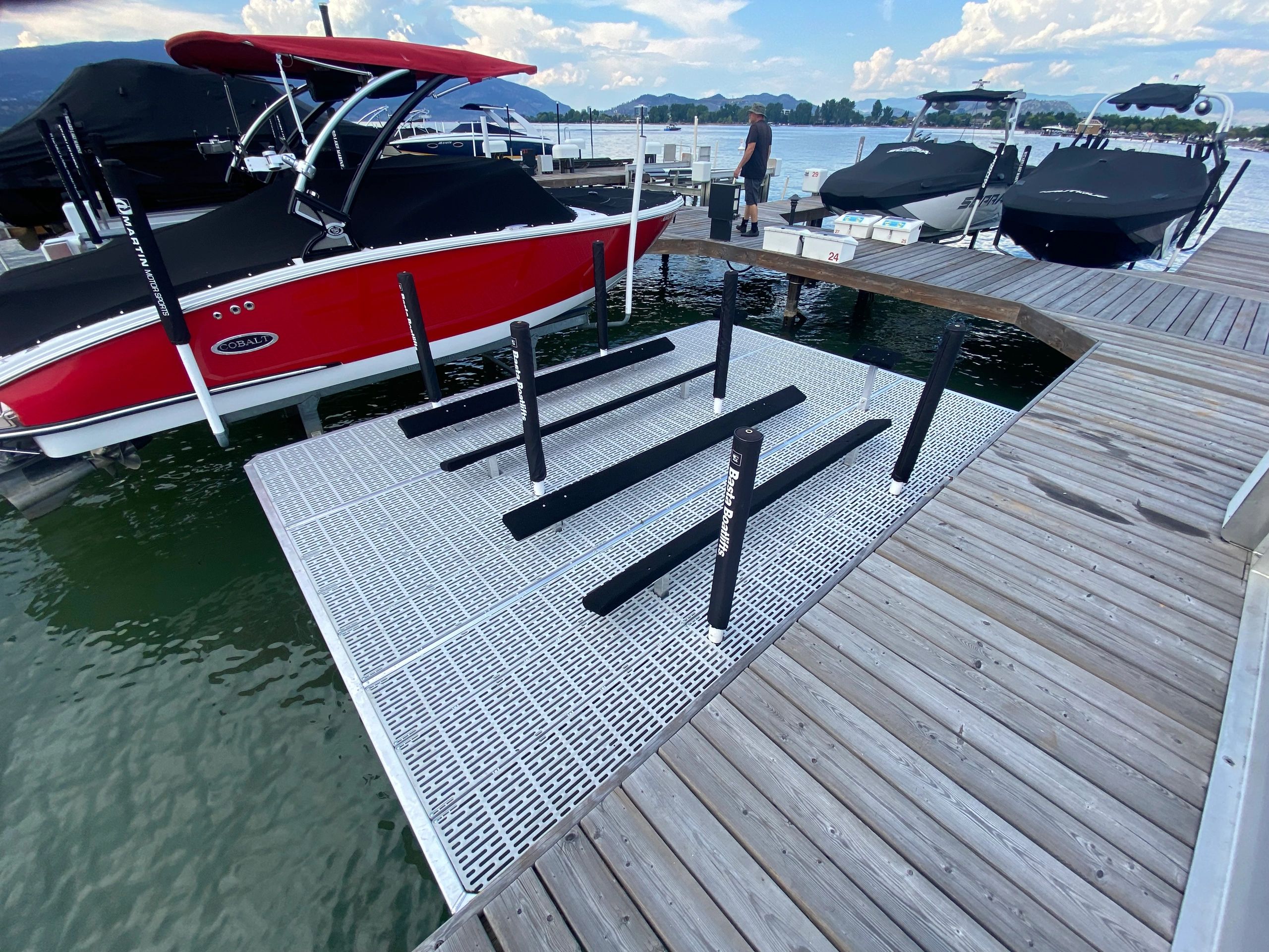 Single, double stock lifts available. More than 2 personal watercrafts lift assemblies can be custom ordered.